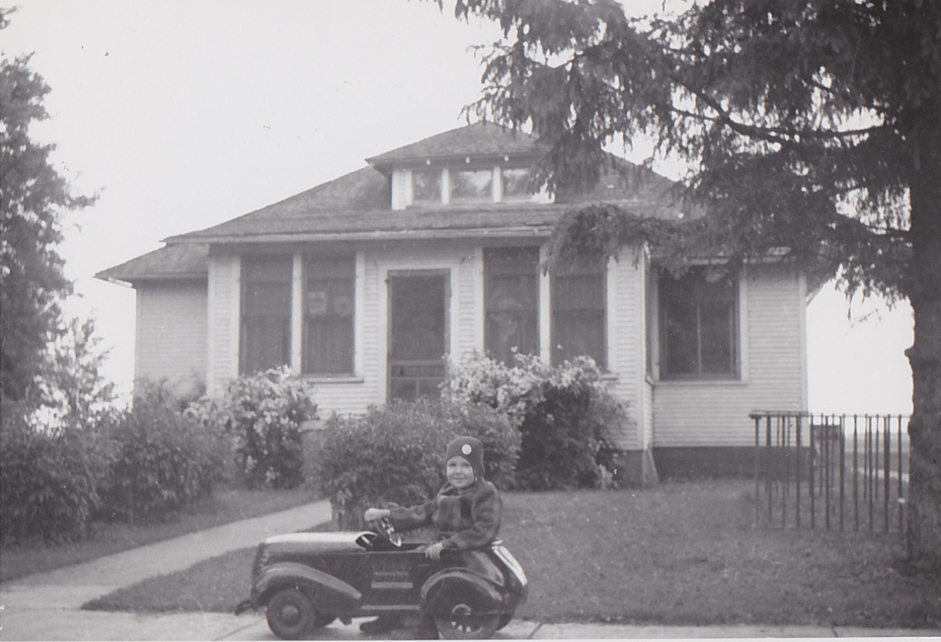 My grandfather built this car for me in his shop at the farm implement. It had pedals for power.