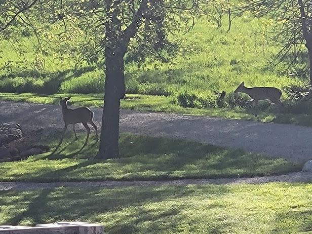 The sun did shine, and the deer came out into our parklike setting by the creek....